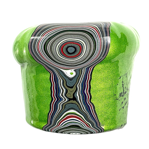 I have over four decades of experience crafting unique Fordite pieces. Contrary to the long-held belief that new Fordite rough is nearly impossible to find due to modern manufacturing changes, there is still some contemporary material available to lapidary artists like myself. My collection comes from a very small number of trusted, reputable dealers whose material I have known for years, ensuring authenticity and proper provenance. When considering Fordite, it is essential to distinguish genuine material from the many imitations now flooding the market—resin blends, layered paints, and mass-produced composites with no true automotive history. I stand firmly behind the authenticity of every piece I create.