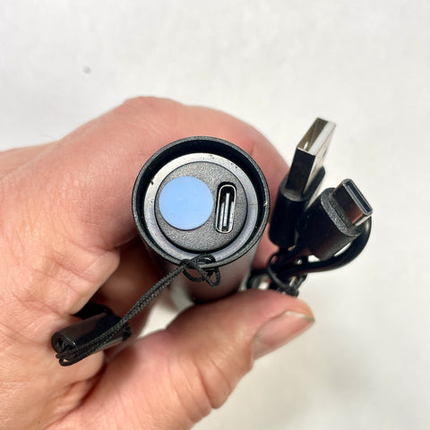 The flashlight ships partially discharged due to postal regulations. Fully charge before first use using the included Micro USB cable.