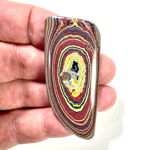 I hand cut this freeform cabochon out of genuine Fordite. Measurements in the title. Rough material came from the factory in Bowling Green, KY.