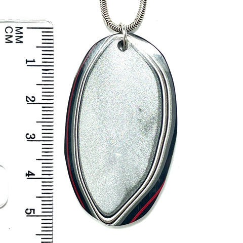 This is a pendant I hand made in my studio in Portland, Oregon out of genuine Fordite.  I used material from the Ford Kansas City Assembly in Claycomo, Missour where they make the F150.   Dimensions in title in millimeters.  Sterling Silver jump ring will fit most chains. CHAIN NOT INCLUDED.  Shipped in a gift box with a Certificate of Authenticity.