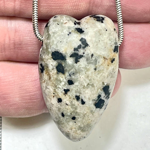 This yooperlite heart is part of my long-standing practice of carving hearts from stone—objects meant to be held, worn, or kept close as quiet companions. Yooperlite carries the magic of hidden light, revealing its fiery glow only under ultraviolet illumination, reminding us that there is often more beneath the surface than first appears. Shaped as a heart, this stone becomes a symbol of inner warmth, emotional truth, and the spark of life carried within even the most unassuming forms. Each heart I make has its own presence and story, shaped by nature, time, and my hands—an invitation to connect with both the ancient geology of the Earth and the living energy it still holds.