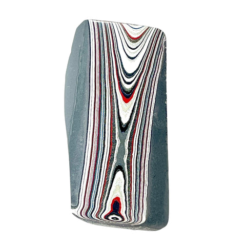 My journey with Fordite dates back to the 1970s when I was actively involved in our local rock club in Michigan. Back then, dedicated rockhounds employed in the auto industry would salvage chunks of dried, layered car paint from factory painting booths, a practice dating back to the late 1960s. This overspray paint, subjected to repeated baking in curing ovens, gained remarkable hardness and solidity. It was affectionately known then by various names such as "Fordite, Chryslerite, Buickite, Detroit Agate," but over the years Fordite has become the most widely recognized and cherished term. Today, Fordite has evolved beyond its novelty origins to become a sought-after faux gemstone. Explore my collection and discover the rich history and unique beauty of genuine Fordite.