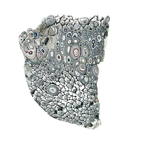 My journey with Fordite dates back to the 1970s when I was actively involved in our local rock club in Michigan. Back then, dedicated rockhounds employed in the auto industry would salvage chunks of dried, layered car paint from factory painting booths, a practice dating back to the late 1960s. This overspray paint, subjected to repeated baking in curing ovens, gained remarkable hardness and solidity. It was affectionately known then by various names such as "Fordite, Chryslerite, Buickite, Detroit Agate," but over the years Fordite has become the most widely recognized and cherished term. Today, Fordite has evolved beyond its novelty origins to become a sought-after faux gemstone. Explore my collection and discover the rich history and unique beauty of genuine Fordite.