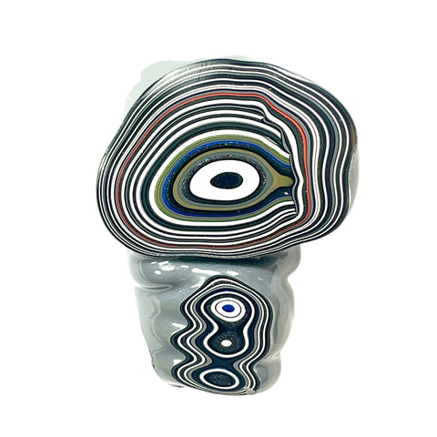 I have over four decades of experience crafting unique Fordite pieces. Contrary to the long-held belief that new Fordite rough is nearly impossible to find due to modern manufacturing changes, there is still some contemporary material available to lapidary artists like myself. My collection comes from a very small number of trusted, reputable dealers whose material I have known for years, ensuring authenticity and proper provenance. When considering Fordite, it is essential to distinguish genuine material from the many imitations now flooding the market—resin blends, layered paints, and mass-produced composites with no true automotive history. I stand firmly behind the authenticity of every piece I create.