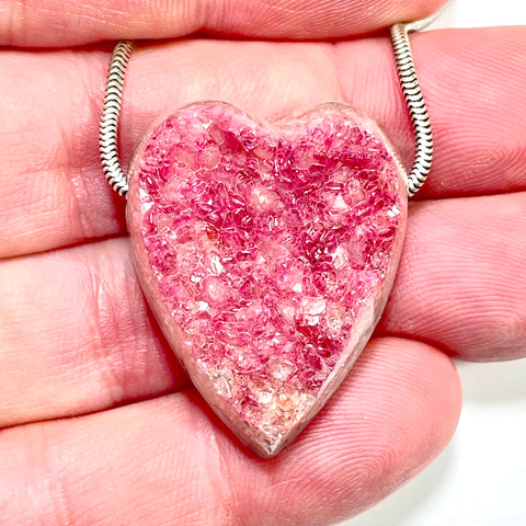 I hand cut this freeformed shaped focal bead out of natural pink drusy cobalto calcite from Congo. Measurements are shown in the listing title in millimetres. 2.5mm drill hole. CHAIN NOT INCLUDED. Wonderful sparkly surface with natural pink druzy crystals all across the front. Buff polished sides and back. Very rare and beautiful. Compare with other cobalto calcite for sale on line. You won't find beads like this!